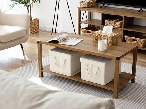 Every item should earn its place. Think ottomans that store blankets, or side tables with hidden compartments.