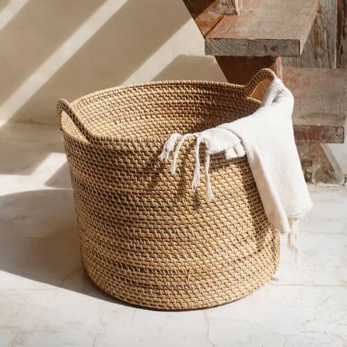 Woven Rattan Basket  – neutral tones and minimalist design that blends effortlessly into any Japandi interior.