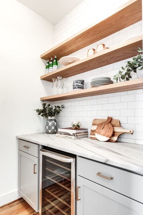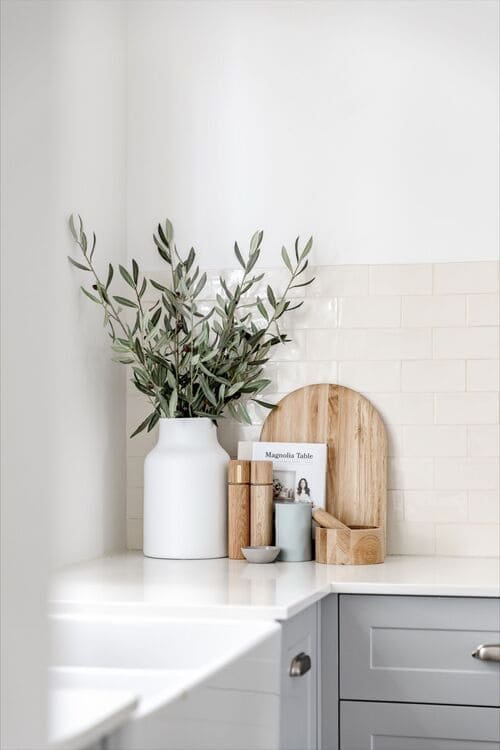 Wooden countertops or chopping boards left out on purpose (yes, decor!) add a lot of warmth and texture.