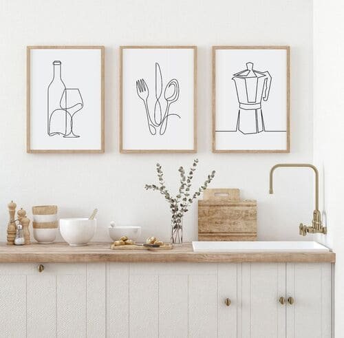Choose prints that are neutral, line drawings, or even old food posters.