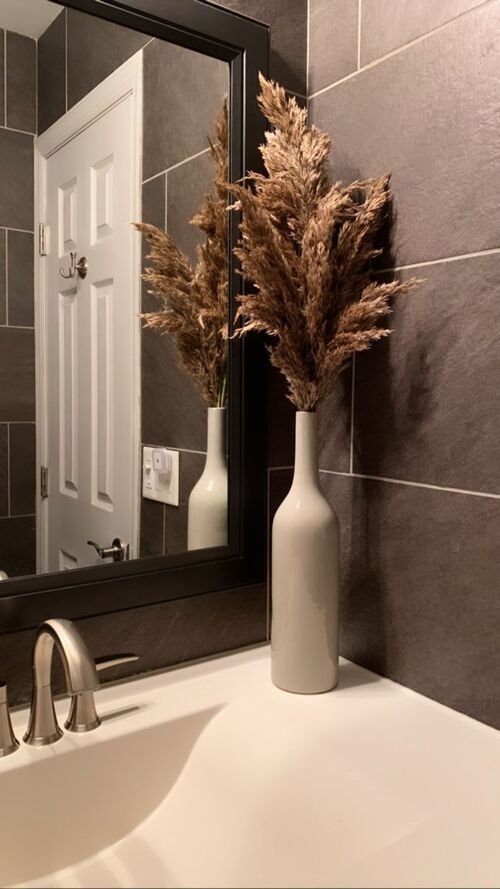 I like this for smaller bathrooms when you just want one “wow” moment. Keep the vase simple so the pampas stays the main character.