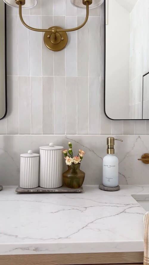 I’ll show you simple styling tricks I use all the time: how to mix textures, where to place your daily essentials so they don’t look messy, what to add if your counter feels boring, and little details (like trays and mini greenery) that make everything feel intentional without trying too hard.