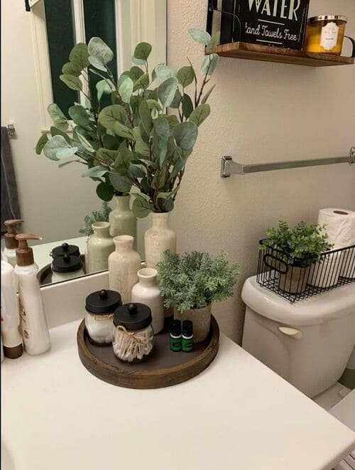 When I style mine like this, I always add rolled towels—it’s simple but looks like effort.