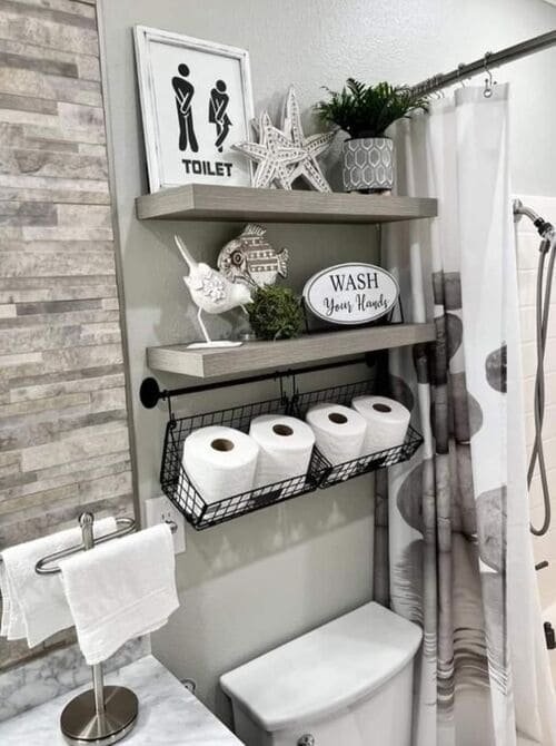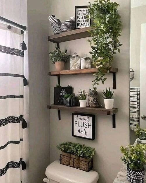 This post shows you 15 Bathroom Shelf Decor Ideas